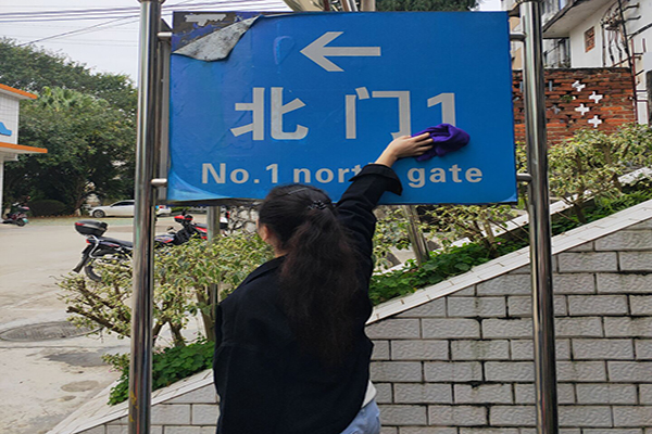 本次活动,2018级汉语言文学5班全班30名同学分为10个小分队,对西校区格致楼部分教室进行桌椅卫生清洁,给校园路标指示牌“洗脸”,清除校园公共宣传栏过期广告等等,整个志愿活动持续一个多小时。