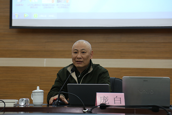 庞白向聆听讲座的学生讲述了自己走上写作之路的过程。学习航海专业的庞白毕业后从事海运工作,海上平静的生活让庞白闲暇时有了读书、写作的时间并由此爱上了写作。海上经历的人和事也给予了他大量的写作素材。《慈航》就记录了他二十四年走过的路,他说,追忆往事让他感到迷茫痛苦,写作《慈航》使他有机会回头望一望自己走过的路,清楚地认识了自己走过的足迹。一些人经常因为创作而和庞白联系在一起,成为文学上的好友、生活上的挚友。因为诗集《水星街24号》的出版,他认识了凹地诗群的朋友,获得了珍贵的友谊。他觉得写作是一件奇妙的事情,让人获得意想不到的收获,使生命变得丰富起来。《唯有山川可以告诉》是庞白新近出版的散文诗集,记录了他对世间山川万物的体验、认识和感悟。关于散文诗,他认为古典而不固步自封、简单而意蕴丰沛、直接而简洁明了是它的特点。
