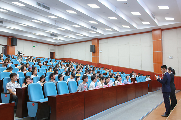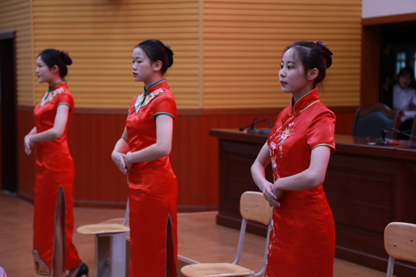当晚的弘毅楼1区205报告厅,掌声雷动,bw必威西汉姆联第二届秘书技能大赛最引人注目的一个环节(汇报展示和工作情境展示部分)在此如期进行,我院300多名师生到场观摩。在汇报展示环节,各组选手在规定时间内,重点围绕所制作PPT,依次登台进行相关环节的展示演说。每名队员通过个人仪表仪态、语言举止等,向观众展示了秘书应有的职业形象、职场礼仪;职业情境展示则更为精彩,本部分重点考核选手在应对不同工作岗位不同问题时综合运用知识及技能进行优质服务的能力。每组队员都在现场展示特定情境下的职业礼仪服务素养,面对不同突发事件,他们运用专业知识巧妙应对,顺利解决问题,显示出了参赛选手的过硬基本功和较强的职业素养,以及良好的团队沟通协作能力。经过三个部分的激烈角逐,最终来自2017文秘班的1号参赛队伍郭晨晨团队获得第一名。