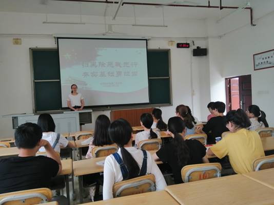 5月17日,文传学院学生第二党支部在格致楼102教室开展“扫黑除恶我先行,夯实基础勇担当”主题党日活动,活动由支部书记谢婉莹主持。