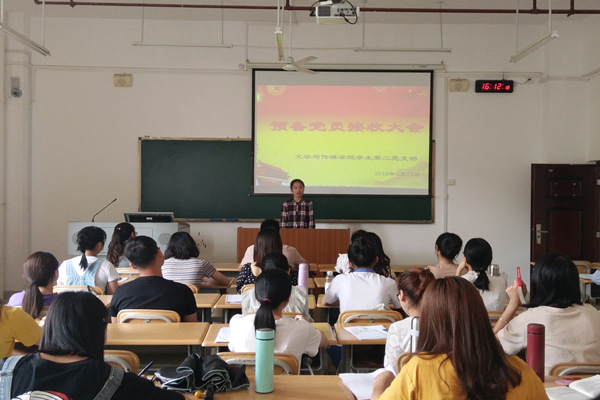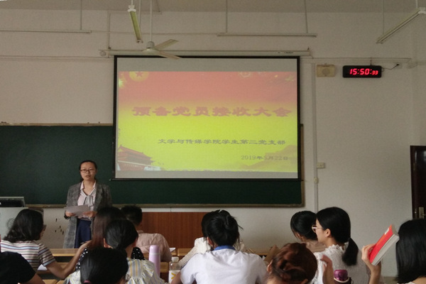 5月22日下午,文传学院学生第二党支部在西区格致楼311室召开预备党员接收大会,讨论关于甄铎皓、栗元彪、韦东莲等16名发展对象的入党问题。会议由支部书记谢婉莹主持。