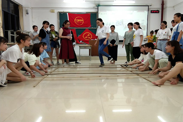 汉语言174张嘉荣深情的吉他弹唱《痴心绝对》和《爱要怎么说出口》拉开了序幕,以赛促学,“端午知识抢答赛”环节,每班派出一个4人小队,抢答关于端午习俗的问题,检验端午知识储备,拓宽传统节日知识学习;紧张刺激的知识竞赛后,进入 “齐心协力夹粽子” 趣味游戏环节,每班派出6人小队,分为三个轮回,用时少的队伍为胜,游戏充分考验了同学们沟通交流能力以及凝聚团队合作力量;展专业本色,汉语言174蒙渊丽、刘杉杉、王文燕、梁慧岚4位同学诗歌朗诵《在端午,聆听》以及17汉教欧兰亲、刘东梅朗诵《屈原塔》带领同学们感受经典之美,体会屈原爱国之情;悠扬的葫芦丝叠加悦和的歌声在空中回旋,17汉教刘华龙演奏葫芦丝《清清玉湖水》,汉语言173班刘诗煜清唱《小半》与17汉教班卢秋婷独唱泰语歌《ไม่เคย(从来没有)》,让同学们享受了一场音乐盛宴;端午节的传统习俗体验环节更是活动推向了高潮,身穿华丽汉服同学们汉服走秀,仪态万千,姿势优美,无不体现了中华民族文化之精美,相互画“王”字和系五彩绳,表达了端午安康的祝福;欢乐齐跳竹竿舞后,活动在同学们边吃粽子边听17汉教班梁灵和174班陈泳宏讲关于端午节的故事和习俗中圆满落下帷幕。