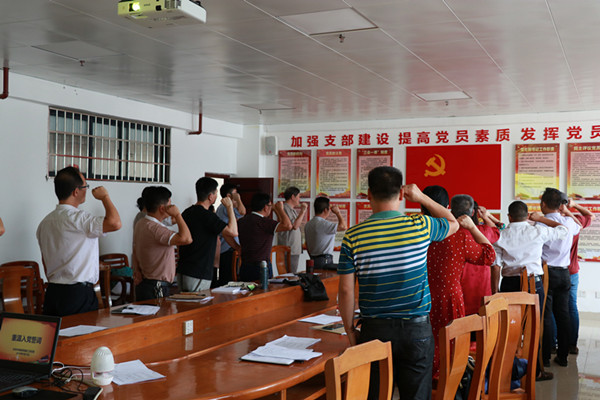 最后,在领誓人韦璇的领誓下,全体教师党员面对党旗,再一次举起右手庄严宣誓,表达了坚定党的信念和为党的事业奋斗终身的决心。宣誓完毕,全体教师党员一起观看了红色教育影片《血战湘江》。