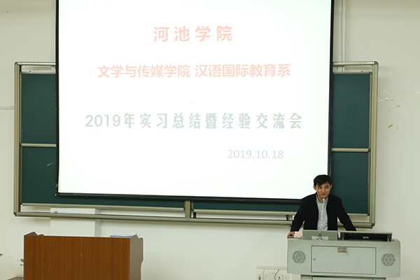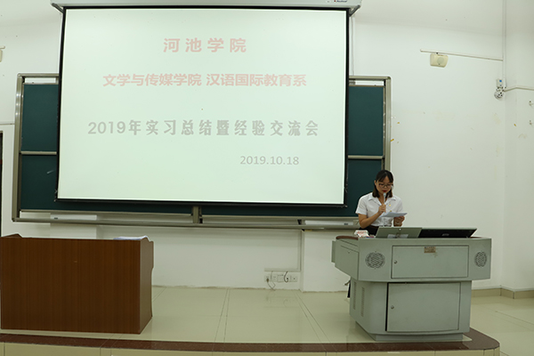 2019年10月18日晚,bw必威西汉姆联汉语国际教育系2019年实习总结暨经验交流会在格致楼负101成功召开。文传学院副院长陈代云、院教务办主任黄猛、汉语国际教育系系主任杨静以及张玉苹、陈志学、韦璇等三位汉教系的班主任出席了本次交流会。交流会由汉教系16级学生黄芳芳主持,汉教系全体学生参加了本次活动。