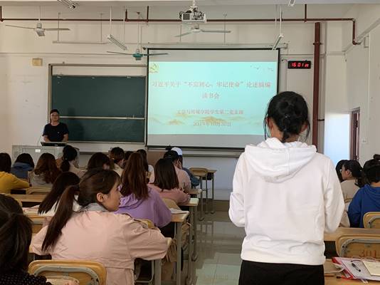 10月30日下午,文传学院学生第二党支部在格致楼302教室开展学习《习近平关于“不忘初心、牢记使命”论述摘编》读书学习会,会议由学生党员甄铎皓主持,在校党员及发展对象出席会议。