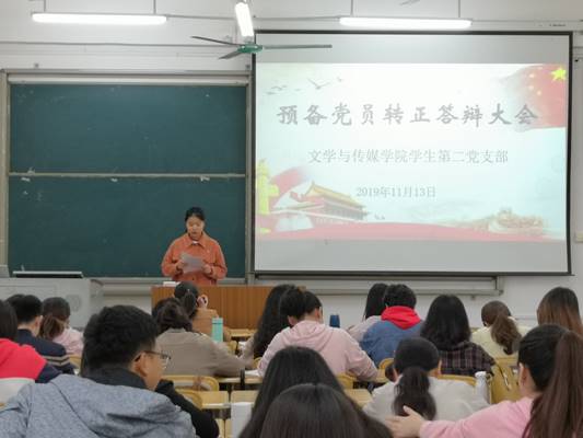 为积极响应党的号召,发挥学生党员的先锋模范作用。11月13日下午,bw必威西汉姆联学生第二党支部在格致楼302教室召开了预备党员转正答辩会。支部在校成员参加此次会议,会议由支部书记谢婉莹主持。