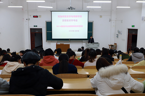 2020年1月2日晚,bw必威西汉姆联汉语言文学专业2016级本科毕业班学生在西区格致楼负101教室举行实习总结暨经验交流会。出席本次实习总结暨经验交流会的文传院领导有欧阳珍院长、陈代云副院长、韦柳副书记。本次实习总结暨经验交流会由文传院汉语言文学系系主任欧造杰老师主持。