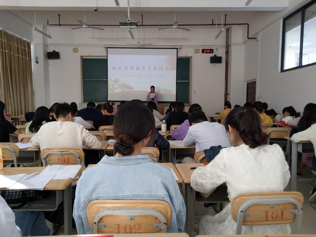 2020年11月18日下午,文传学院学生第二党支部召开了2020年下半年接收预备党员答辩会议。文传学院学生第二党支部谢婉莹、李梦辉、韦柳和韦东柳4位教师党员以及7位正式学生党员担任评委并考核本期发展对象。