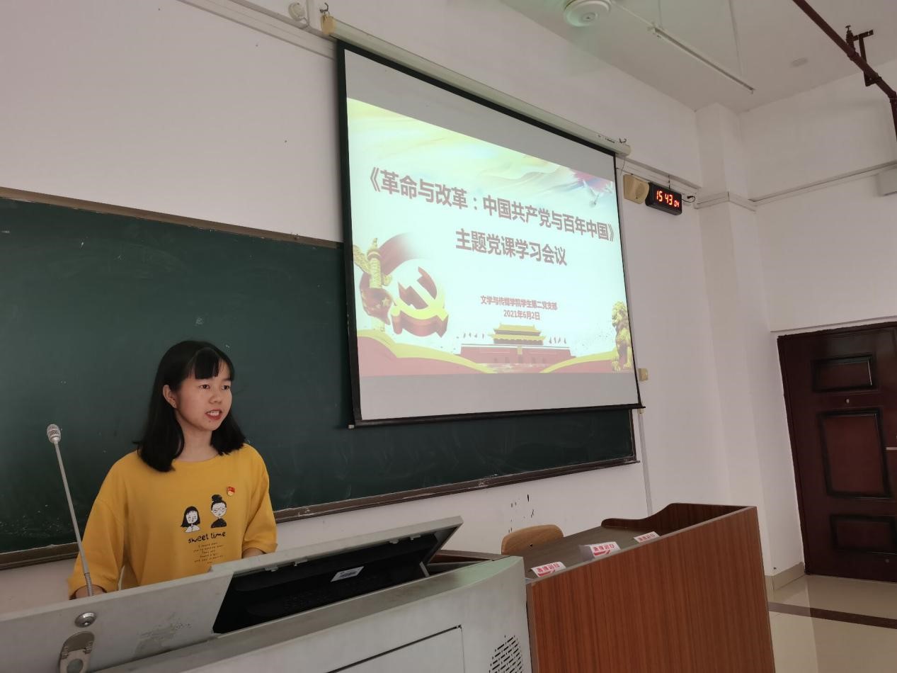 为了深入开展党史学习教育,引导广大青年知史爱党,知史爱国。bw必威西汉姆联学生第二党支部于6月2日下午在格致楼509教室组织党员、发展对象观看《革命与改革:中国共产党与百年中国》主题党课会议视频。此次会议由学生党员彭晶晶同志主持进行开展,支部在校党员、发展对象参加。
