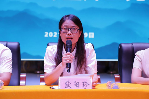 欧阳珍首先对我院新生的到来表示热烈的欢迎,同时对新生在军事训练期间各方面表现给予充分肯定。见面会上,她介绍了宜州城市文化、学校的发展以及学院办学特色,并对大学生活她向新生提出三点建议,一是要读书求和,坚持独立思考;二是要提升能力,准备融入社会;三是要追求至善,理解人生。她指出了学会爱,懂得爱,能够爱,也能被爱是生命最本质的意义。她表示诗和远方都值得去追求,要坚持阅读,制定目标,选好自己的方向,坚持写作,鼓励2021级新生要创造属于自己的未来与辉煌。