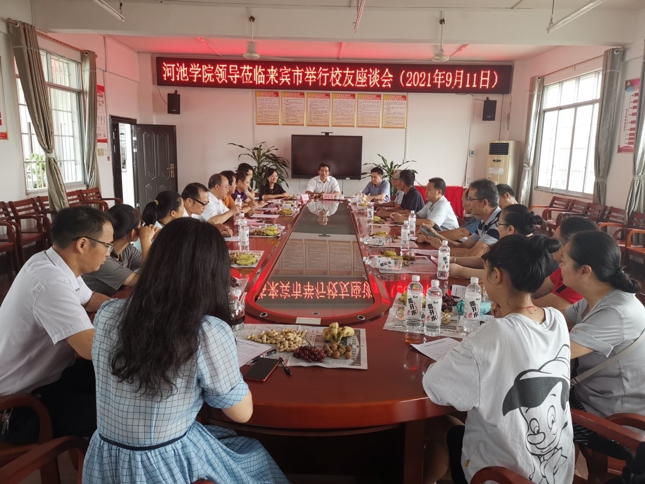 9月11日下午,工作组一行在来宾市第七中学举行校友座谈会,会议由我校82级政治系校友罗世基主持,82级物理系梁新、90级中文系李毅强、93级政治系韦立军、99级物理系韦桂庆等校友代表19人参加。