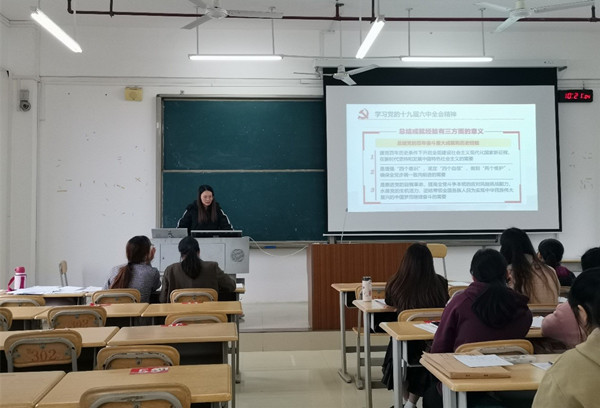 为深入学习党的十九届六中全会精神,推动十九届六中全会精神入脑、入心、入行,11月21日上午,文传学院学生第二党支部在格致楼301教室开展主题学习会,会议由支部书记韦金朋主讲,支部全体师生党员参加。