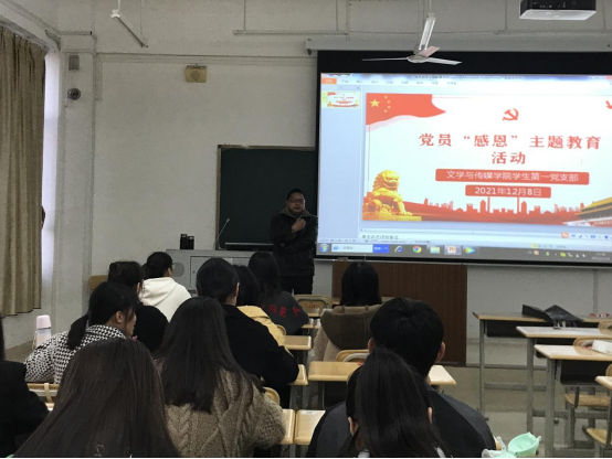 为了重温中国的历史,增强同志们的爱国主义精神,2021年12月8日,文传学院学生一支部于格致楼508教室开展党员“感恩”主题教育活动。本次活动由李春兰同志主持讲解。
