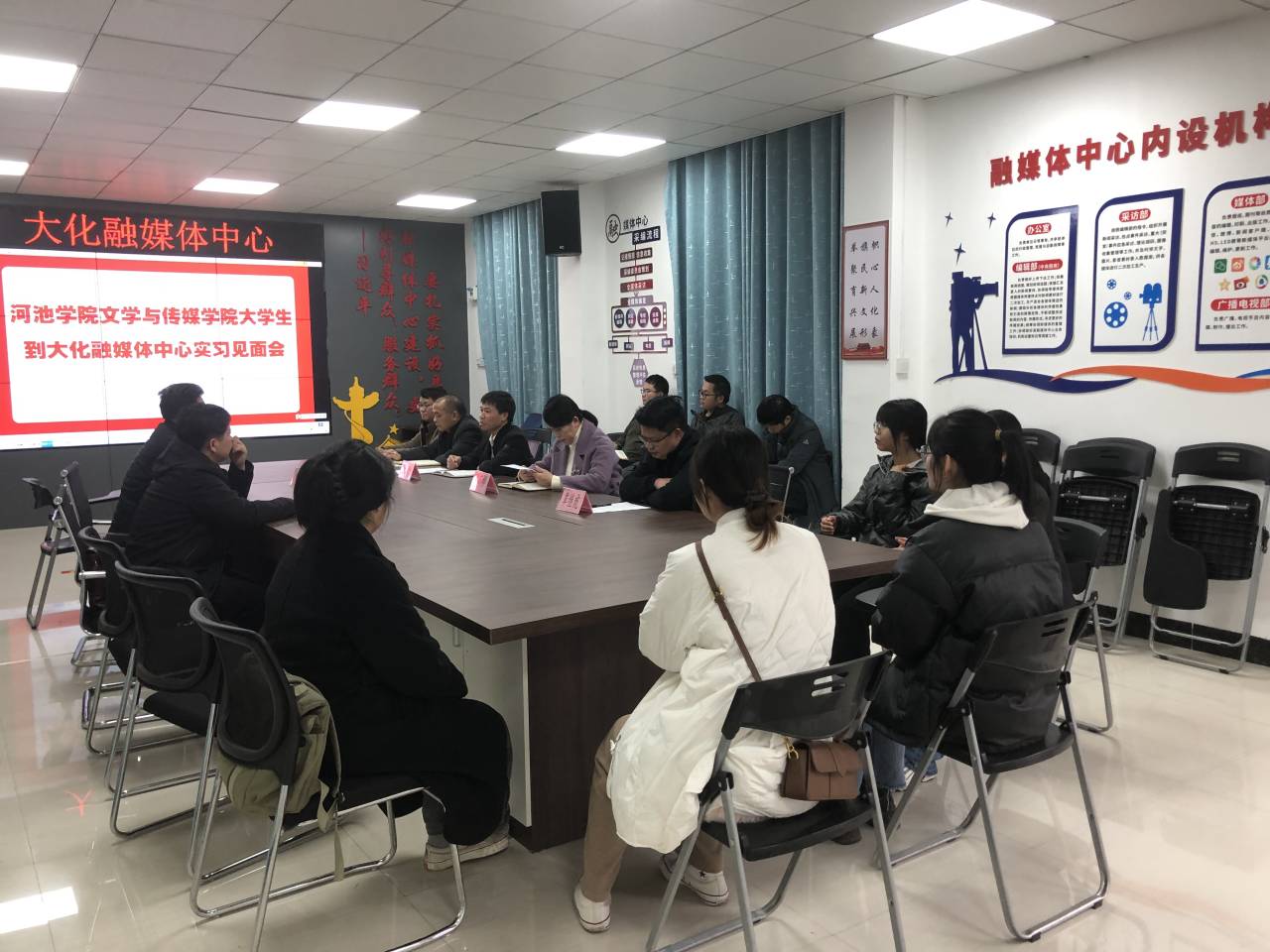 2月10日, 2019级新闻学专业6名学生在副院长欧造杰和白云昭老师的带领下,赴大化县融媒体中心开展毕业实习。大化县委宣传部部长韦莉桦、副部长覃继虎,融媒体中心韦哲主任、覃文军副主任及中心各部门负责人出席了见面会。