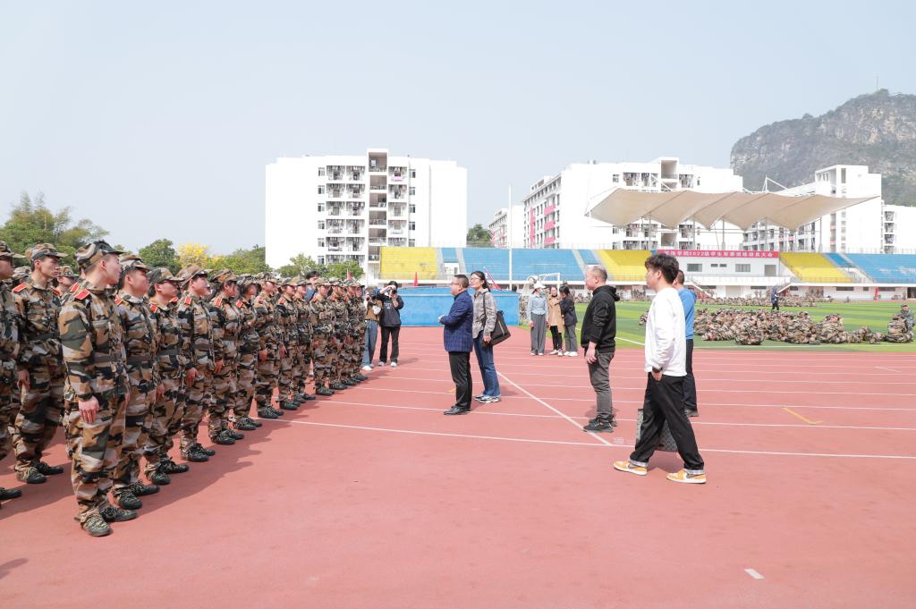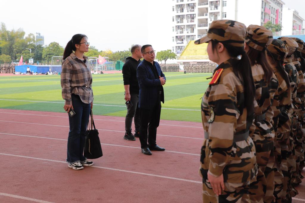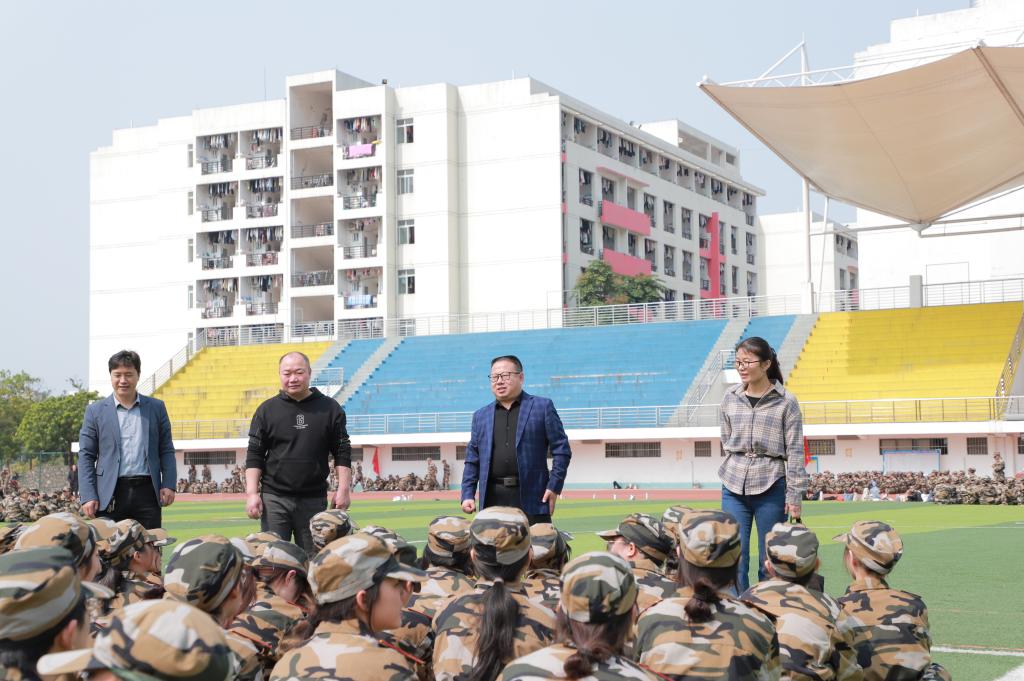 3月14日上午,我院领导到东区田径场看望我院参加军训的2022级学生,全体辅导员与新生班主任一同前往看望军训新生。