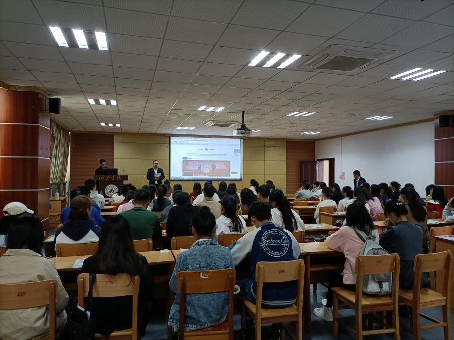 宣讲会上钟文良主任以视频、图片等方式,从企业文化、发展现状及前景、企业岗位需求及用人标准、晋升通道等做了详细介绍;在宣讲互动环节,同学从薪酬待遇、面试流程、职业前景等方面提出自己的疑问,钟文良、梁丽洁认真为同学们解答,场面热烈,掌声不断。