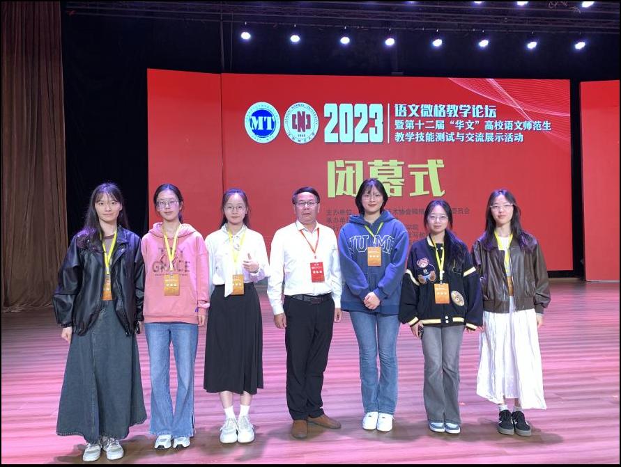 11月3日至6日,由中国教育技术协会微格教学专业委员会主办、江西师范大学承办的2023年第十二届“华文”高校语文师范生教学技能测试与交流展示活动在江西师范大学成功举行。我院6名选手在指导教师老师的精心指导下,凭借充足的赛前准备、清晰的教学思路、精彩的现场表现,最终获得教学设计测试二等奖1项、三等奖4项、优秀奖1项;教学技能测试二等奖1项、三等奖4项、优秀奖1项。具体获奖情况见下表: