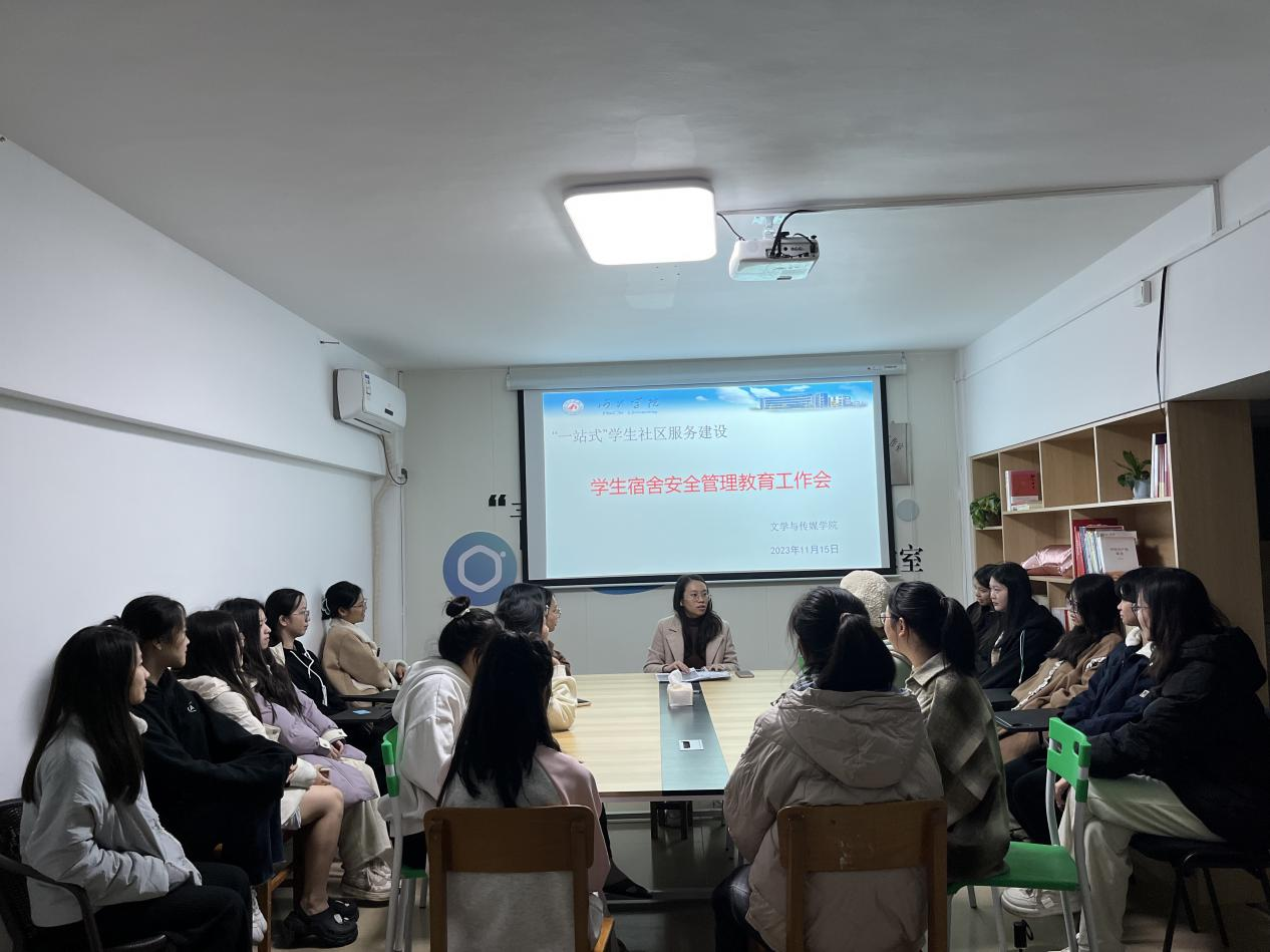 为进一步加强宿舍安全管理,整顿宿舍卫生状况,给同学营造安全、整洁、舒适的住宿环境,我院于2023年11月15日在“一站式”学生社区(“青春领航”辅导员工作室)召开学生宿舍安全管理教育工作会,会议由胡卓坤主持,文传学院宿舍舍长、楼层长参加。
