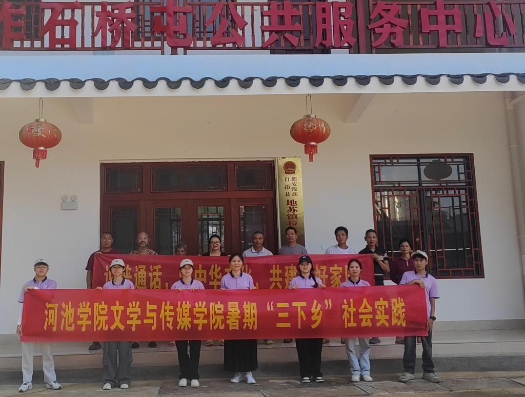 为赋能河池乡村振兴,助力河池“一村一品牌”的乡村语言文字高质量发展新样本建设,根据学校语言文字工作委员会的统一安排,我院师生于7月11日至18日赴都安瑶族自治县和巴马瑶族自治县开展语言文字调研暑期社会实践活动。学院副院长张玉苹、教师王彩健和梁曦带队参加调研。