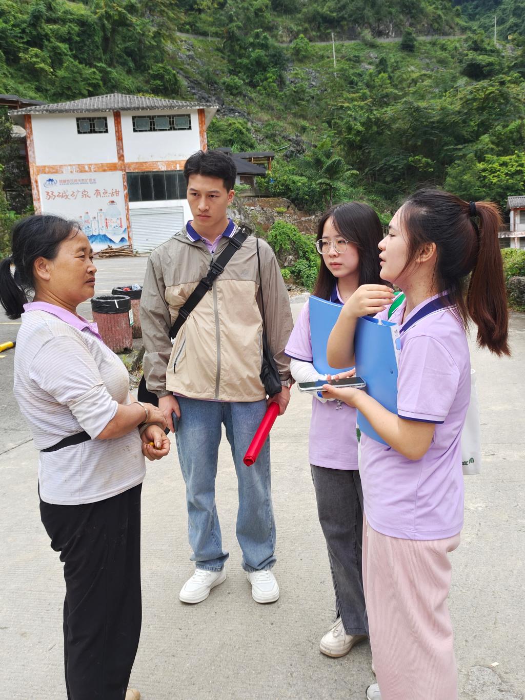 赴巴马瑶族自治县调研的小组深入巴马甲篆镇、那社乡等地开展应急语言服务调研,对相关部门工作人员、当地村民以及外来游客等进行了问卷调查和访谈。学生们在老师的指导下,认真工作,通过实践帮助同学们学会了如何设计问卷、如何进行有效沟通以及如何处理和分析调研数据。
