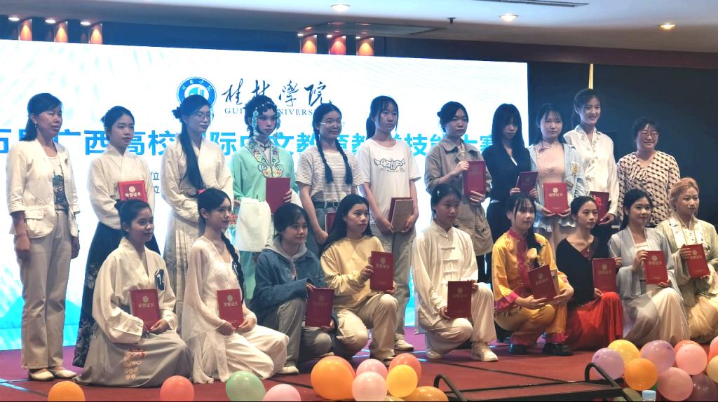 为加强全区高校汉语国际教育专业之间的交流与合作,提升国际中文教育教学质量,11月16-17日,由广西壮族自治区中国语言文学类教学指导委员会主办、桂林学院承办的第五届广西高校国际中文教育教学技能大赛成功举办,我院汉语国际教育专业陈春燕、卢倩颖、刘炎冕三名同学由梁曦老师带队参赛。在比赛中,我院选手自信沉着、从容应对,体现了汉语国际教育专业学生扎实的专业素养、良好的精神风貌,以及作为未来国际中文教师的职业热情。经过激烈的角逐,最终我我校学生共获得二等奖1项,优秀奖2项的良好成绩。
