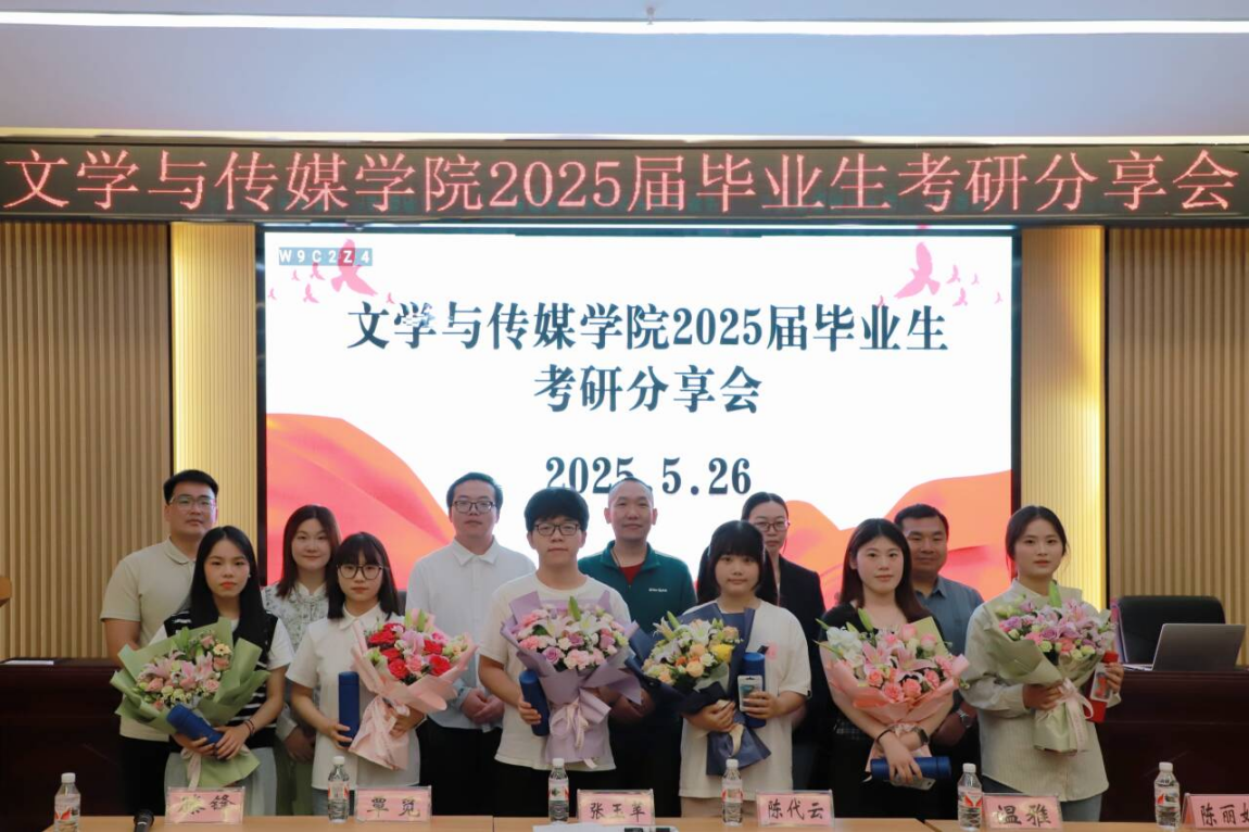 我院2025届汉语言文学专业陈欣荣、程敏、胡鑫鑫、冉欣妍、刘馨和新闻学专业李烨分别被闽南师范大学、广西师范大学、四川师范大学、四川轻化工大学、广东技术师范大学和四川外国语大学录取。在表彰会上,六名同学从自身备考历程出发,分享自己的考研心得,详细阐述了各阶段的复习策略,包括如何制定合理的学习计划、心态调整以及怎样选择合适的复习资料。为低年级学生提供了宝贵的建议,也增加了他们考研的信心。