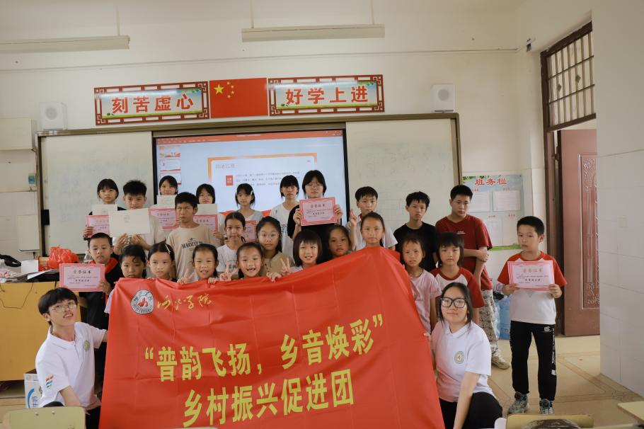为全面贯彻习近平总书记关于青年工作的重要思想,广泛组织引领青年学生投身乡村和基层开展社会实践,直观体验党的创新理论在祖国大地的生动实践。7月12日-15日,我院“普韵飞扬,乡音焕彩”促进团赴来宾市忻城县板内村、上浪村开展推普实践。4名队员通过“精准调研+双课教学+朗诵展演”三维模式,探索推普助力乡村振兴新路径。