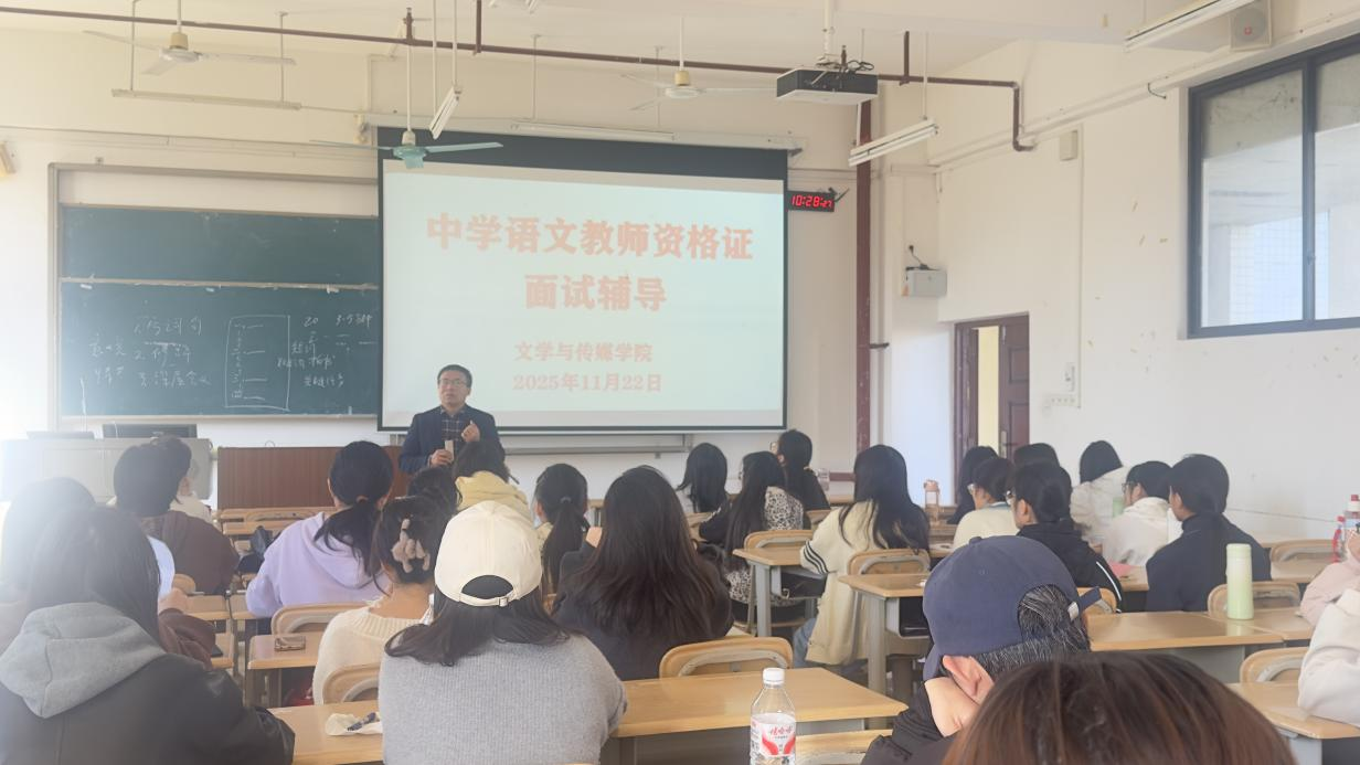 11月22日,我院在格致楼305教室举办了中学语文教师资格面试辅导活动,80多名师范生参加了此次辅导。