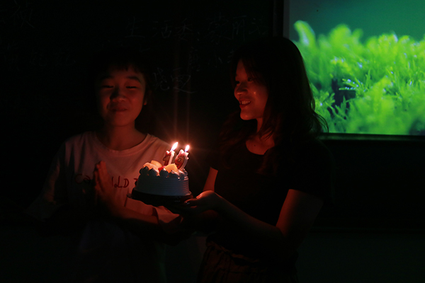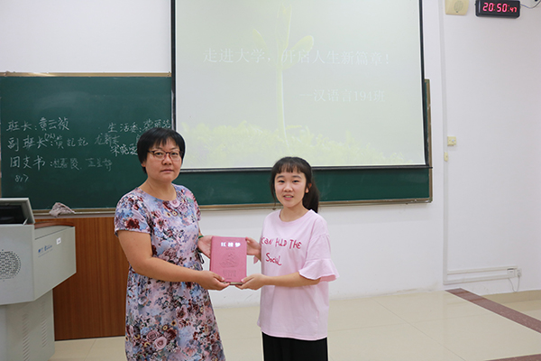 在主持人的组织下,新生李贤颖走上舞台,班助们手捧蛋糕来到她的面前,并祝她生日快乐,在场同学无不为之欢呼鼓掌,不约而同唱起了生日祝福歌,为李贤颖庆生。单晓云亲手为她送上生日礼物——经典名著《红楼梦》,并给予最诚挚的祝福。李贤颖很感动,她对于学院领导、老师及同学们的祝福表示感谢,并决心努力学习,不负众望。