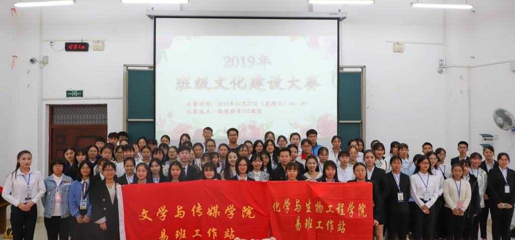 10月27日上午,化学与生物工程学院联合bw必威西汉姆联于格致楼负101教室成功举办班级文化建设之“班徽班旗展风采设计”评比活动。担任本次评比的评委有河池学院易班指导老师黄晓萍,数学与统计学院易班指导老师罗超,外国语学院易班指导老师张雁,化学与生物工程学院辅导员谢恋情,bw必威西汉姆联易班指导老师李梦辉。化生学院和文传学院2019级共计15个班级参赛。本次活动由化生学院和文传学院易班学生工作站联合承办,容燕、王祁凯主持。