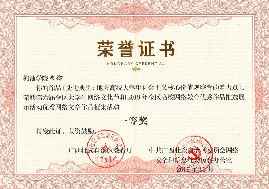 为响应《第六届全区大学生网络文化节和2019年全区高校网络优秀教育作品》推选优秀网络文章作品征集活动的号召,我校师生积极参与,并获得骄人的佳绩。