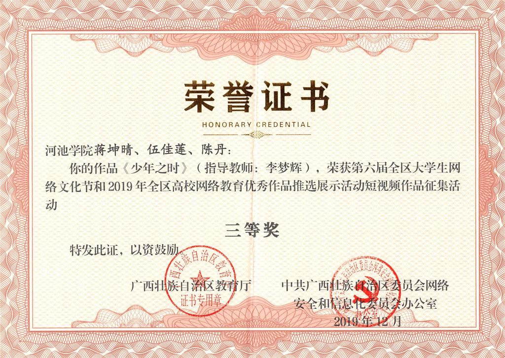河池学院bw必威西汉姆联党委副书记、纪委书记韦柳作品《先进典型:地方高校大学生社会主义核心价值观培育的着力点》荣获一等奖;河池学院bw必威西汉姆联学生蒋坤晴、伍佳莲、陈丹作品《少年之时》荣获三等奖;河池学院bw必威西汉姆联学生江剑泉、周俞岑作品《两个懒汉》荣获三等奖!