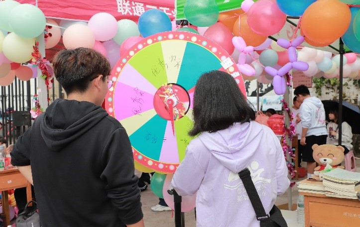 “幸运大转盘”活动分为两天,6日和7日各分为上下午两场,我院的小伙伴们都很积极的转发易班公众号说说并参与。“知识小问答”活动设置了多个小问题,连续回答正确五道题即可获得精美礼品一份。大家都跃跃欲试,施展才华,现场热闹非凡。这两项小活动都增加了运动会的趣味性,同时也带给了同学们良好的游戏体验感。