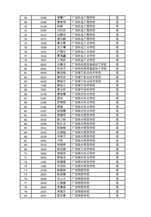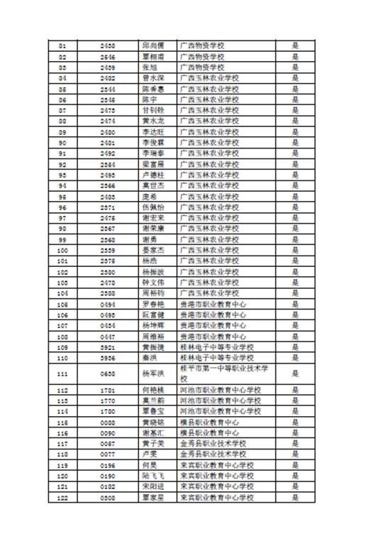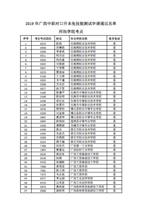 2019年广西中职对口升本免技能测试申请通过名单(河池学院考点)