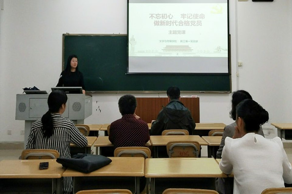 111日晚,文传学院教工第一党支部在格致楼311教室开展“不忘初心、牢记使命”专题党课学习会,由支部书记杨静担任主讲,支部全体党员参加学习。