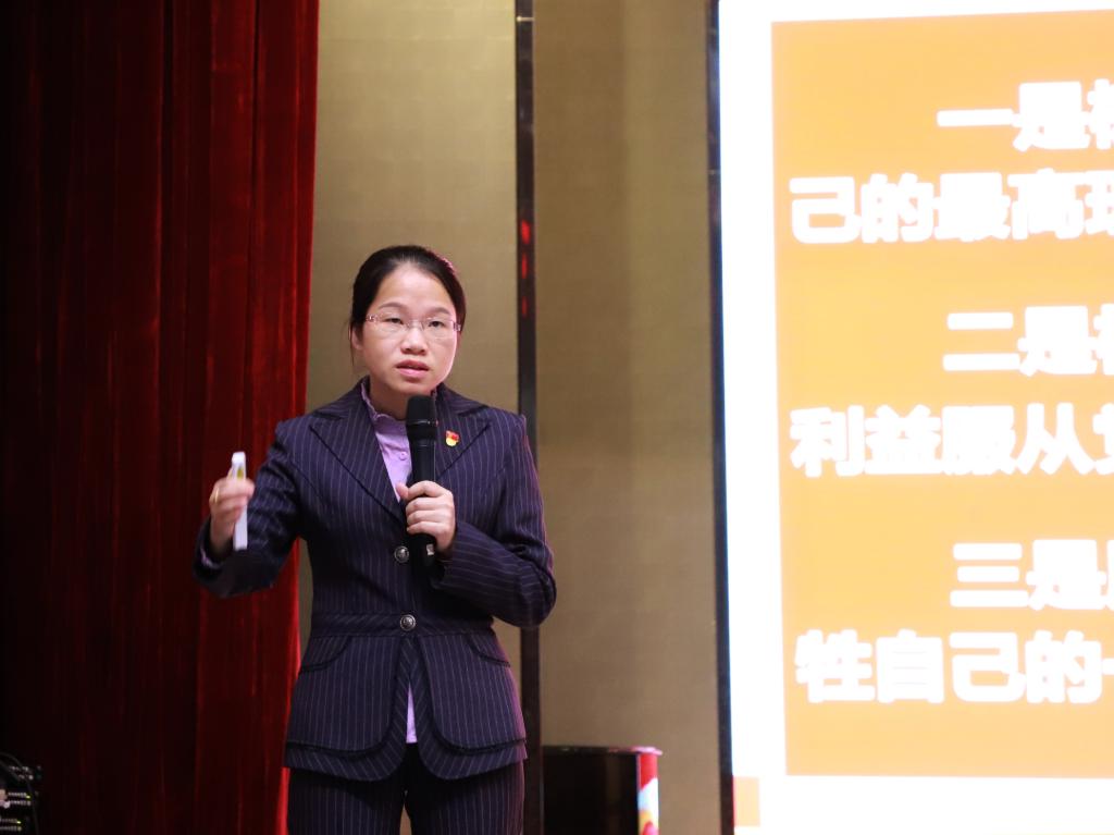牙运豪以“胸怀理想,立鸿鹄志,练真本领,以实际行动争取早日加入党组织”为主题,引用中国共产党章程总纲向新生诠释了什么是中国共产党,从中国共产党的历史功绩点出身为当代大学生的同学们所肩负的历史使命。牙运豪殷切希望同学们端正入党动机,努力争取成为一名中国共产党党员。