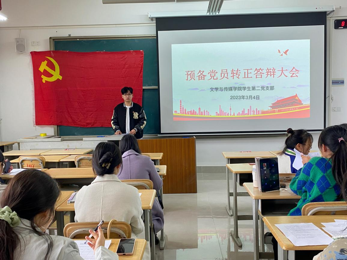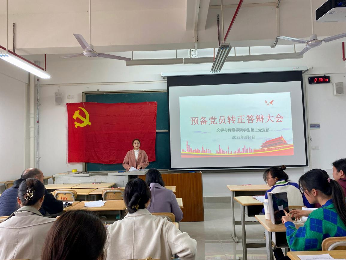 2023年3月4日星期三早上9点,文传学院学生第二党支部在实训楼603进行了2022年第三批预备党员转正答辩会。此次会议中刘瑞秀等7位同志发表转正志愿,并进行转正答辩。