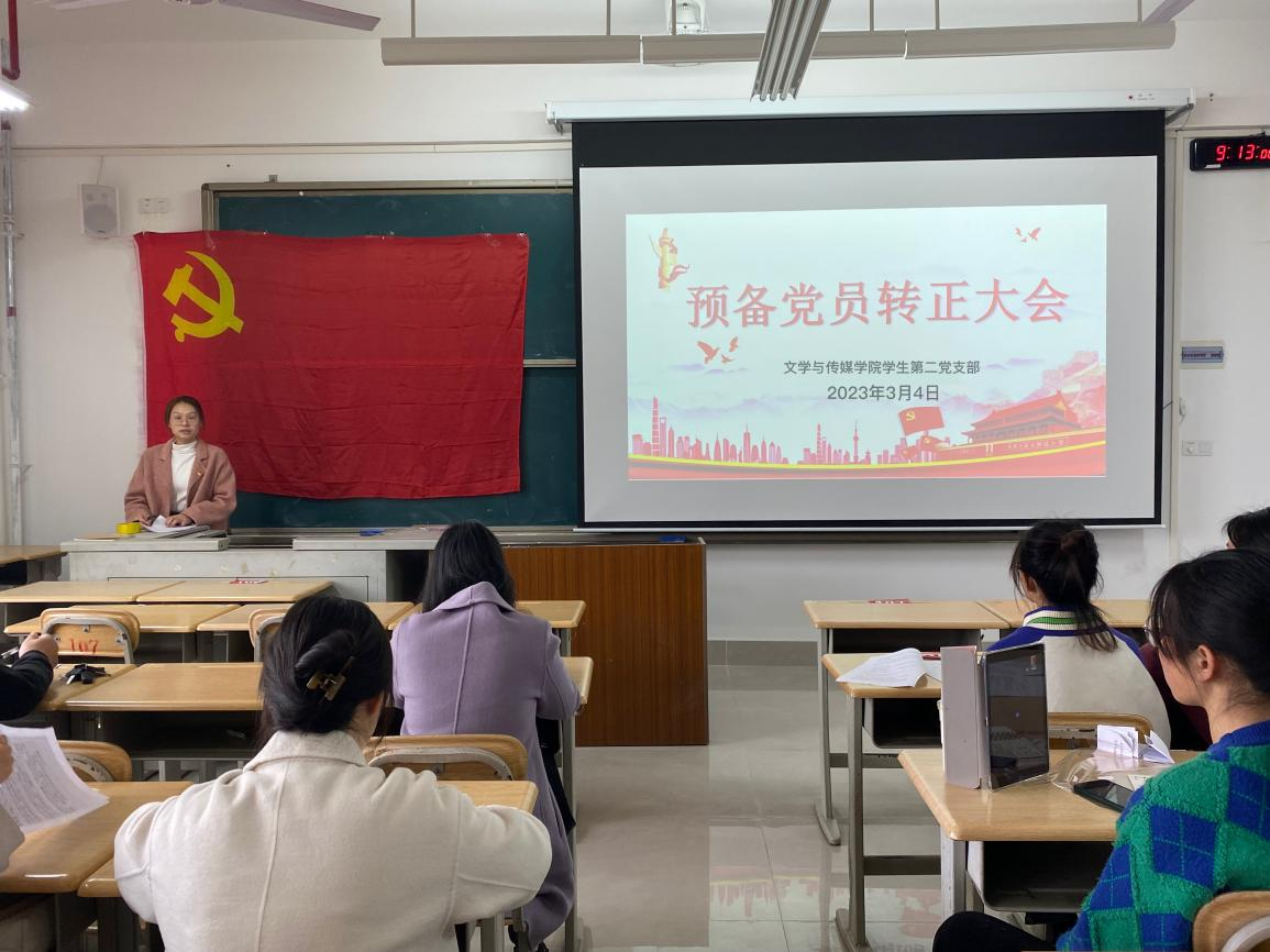 2023年3月4日星期三早上9点,文传学院学生第二党支部在实训楼603进行了2022年第三批预备党员转正会议。此次会议中刘瑞秀等七位同志发表转正志愿,并顺利由中共预备党员转为正式党员。