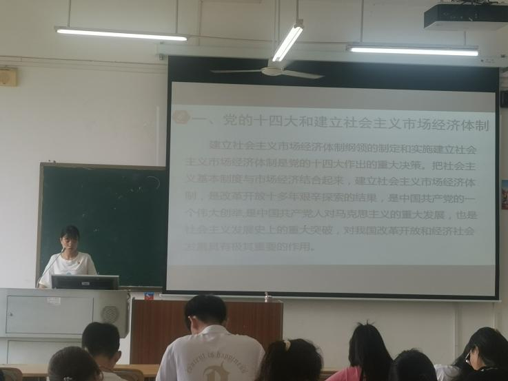 黄小球同志作《中国共产党简史》第八章《把中国特色社会主义全面推向21世纪》读书分享。她围绕“党的十四大和建立社会主义市场经济体制”、“党的十五大和确立邓小平理论为党的指导思想、改革开放的深入推进”两方面进行了深入细致的讲解,详细地阐述了我们党如何抓住机遇并采取一系列重要举措才将中国特色社会主义全面推向21世纪,带领全国各族人民走向崭新的未来。