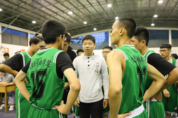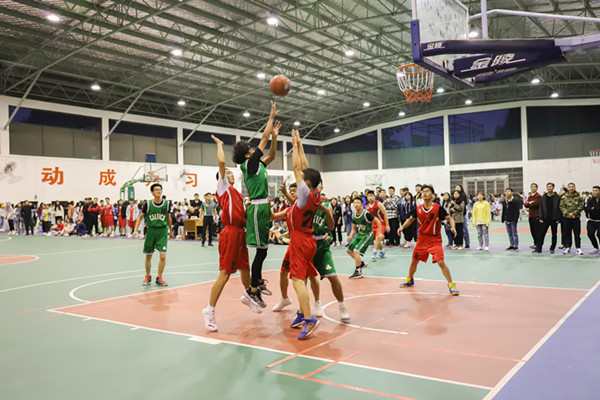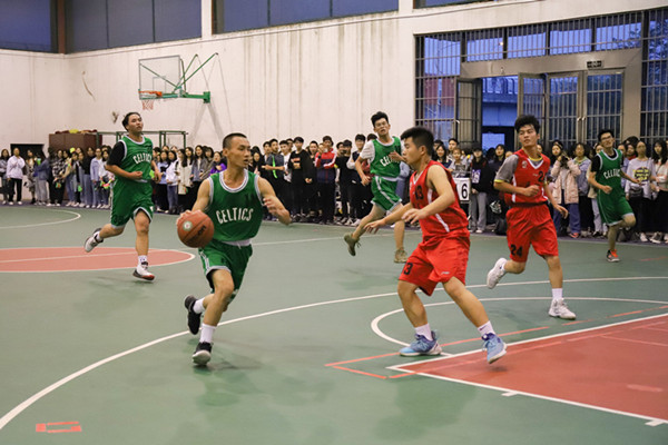 下午在东区校友球馆的篮球赛场,我院男队VS马院。比赛一开始双方就展开了激烈的争夺,我院男队凭借的良好的手感,以21:7的比分结束上半场。