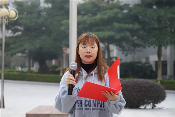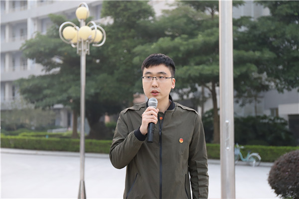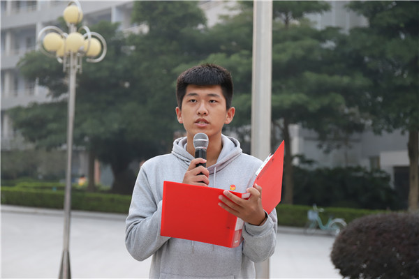 最后,由学院团委副书记黄文婷带领团员重温入团誓词,嘹亮而坚定的誓词与迎风飘扬的五星红旗相得益彰。