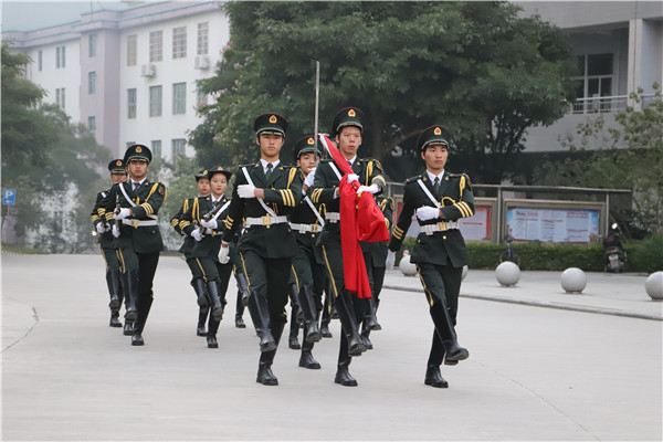 七点整,国旗护卫队迈着铿锵有力的步伐护送国旗入场,伴随着国旗的徐徐升起,全体团员齐唱国歌,行注目礼,鲜艳的五星红旗承载希望与憧憬随风飘扬,现场气氛庄严而肃穆。