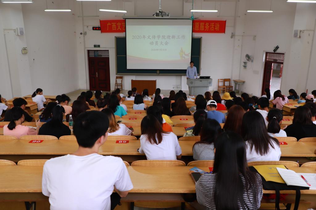 为保证2020迎新工作的顺利开展,9月14日中午,文传学院于格致楼负101教室召开了2020年文传学院迎新工作动员大会。文传学院党委副书记、纪委书记韦柳,团委书记于晓平,辅导员李克忠、李梦辉、韦东柳出席了本次会议,会议由于晓平主持,院团委、学生会全体成员及党员、志愿者参加了本次会议。