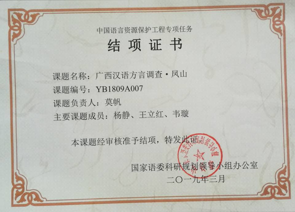 莫帆的2019年中国语言资源保护工程专项任务顺利结项