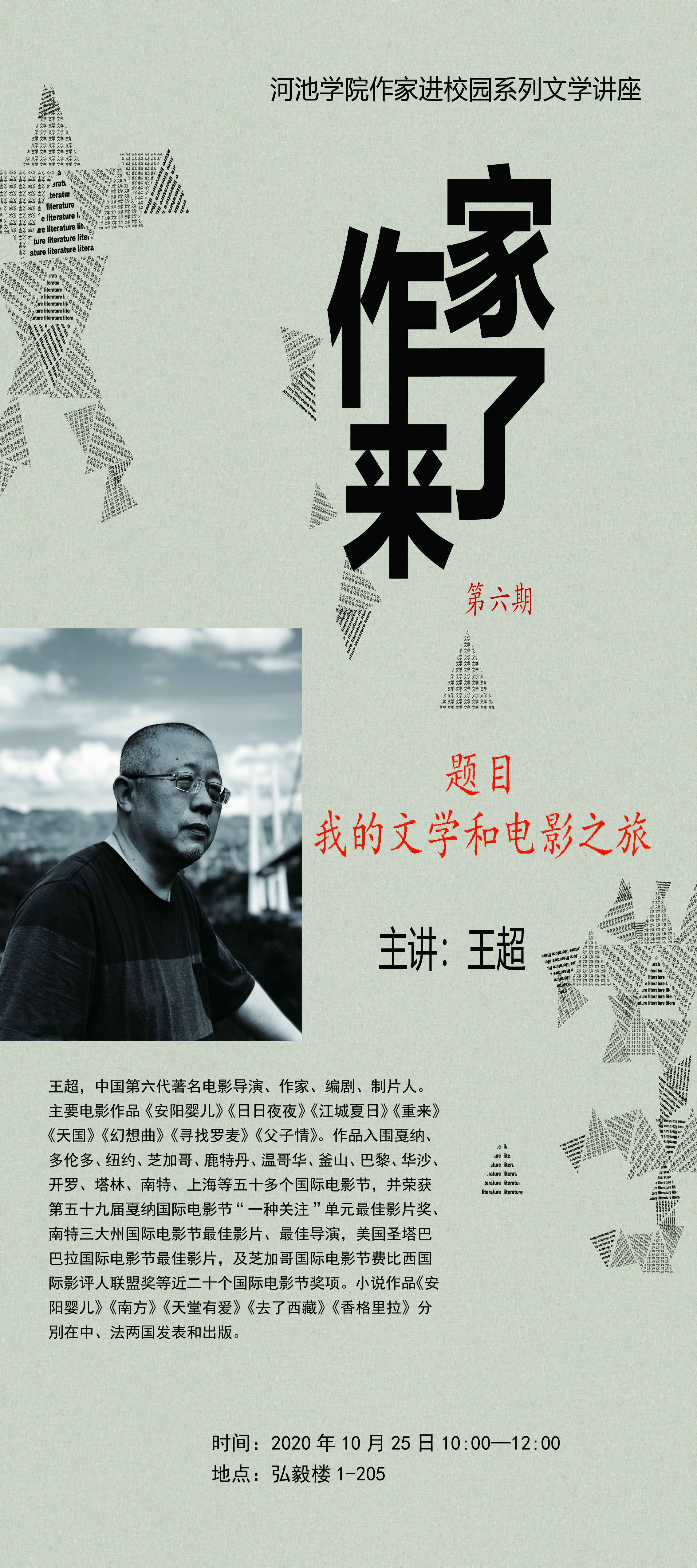 王超,中国第六代著名电影导演、作家、编剧、制片人。主要电影作品《安阳婴儿》《日日夜夜》《江城夏日》《重来》《天国》《幻想曲》《寻找罗麦》《父子情》。作品入围戛纳、多伦多、纽约、芝加哥、鹿特丹、温哥华、釜山、巴黎、华沙、开罗、塔林、南特、上海等五十多个国际电影节,并荣获第五十九届戛纳国际电影节“一种关注”单元最佳影片奖、南特三大州国际电影节最佳影片、最佳导演,美国圣塔巴巴拉国际电影节最佳影片,及芝加哥国际电影节费比西国际影评人联盟奖等近二十个国际电影节奖项。小说作品《安阳婴儿》《南方》《天堂有爱》《去了西藏》《香格里拉》分別在中、法两国发表和出版。