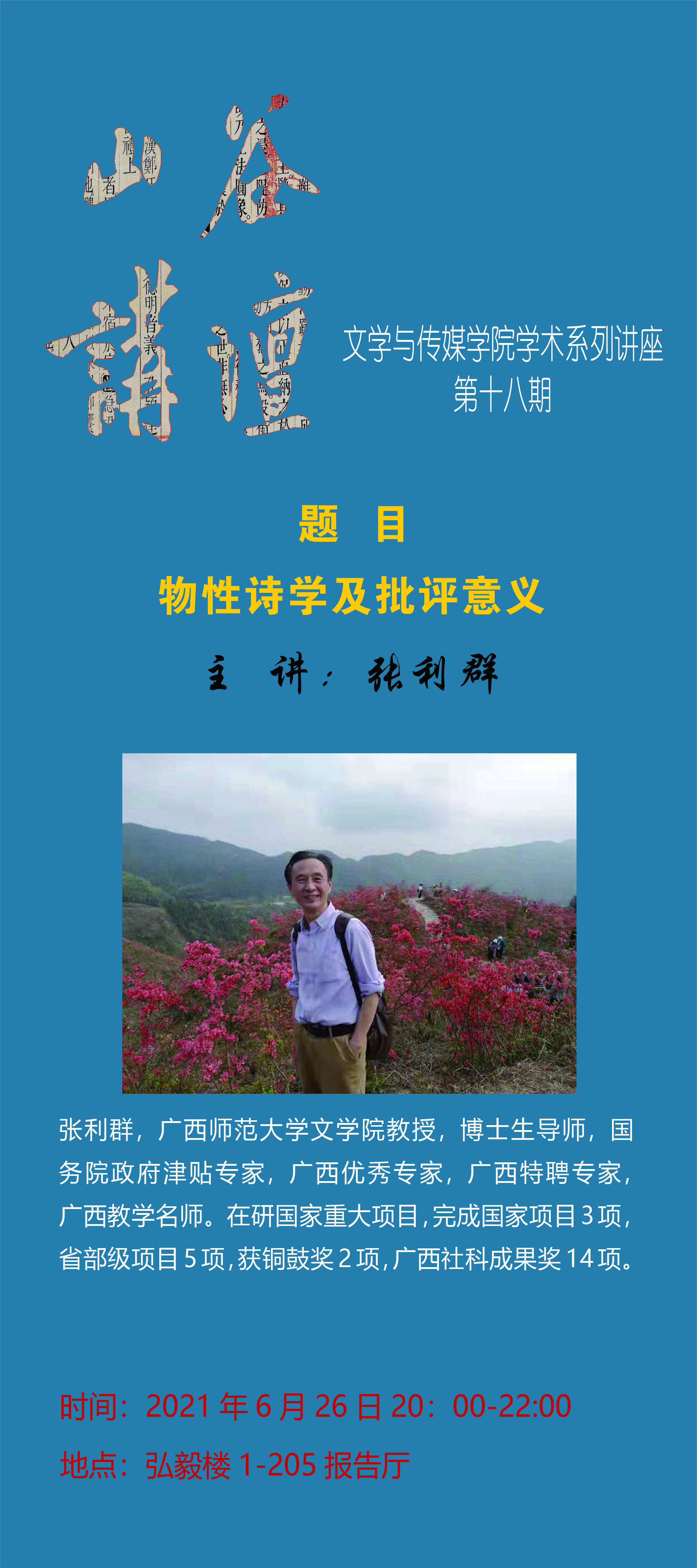 【山谷讲坛】第十八期:物性诗学及批评意义