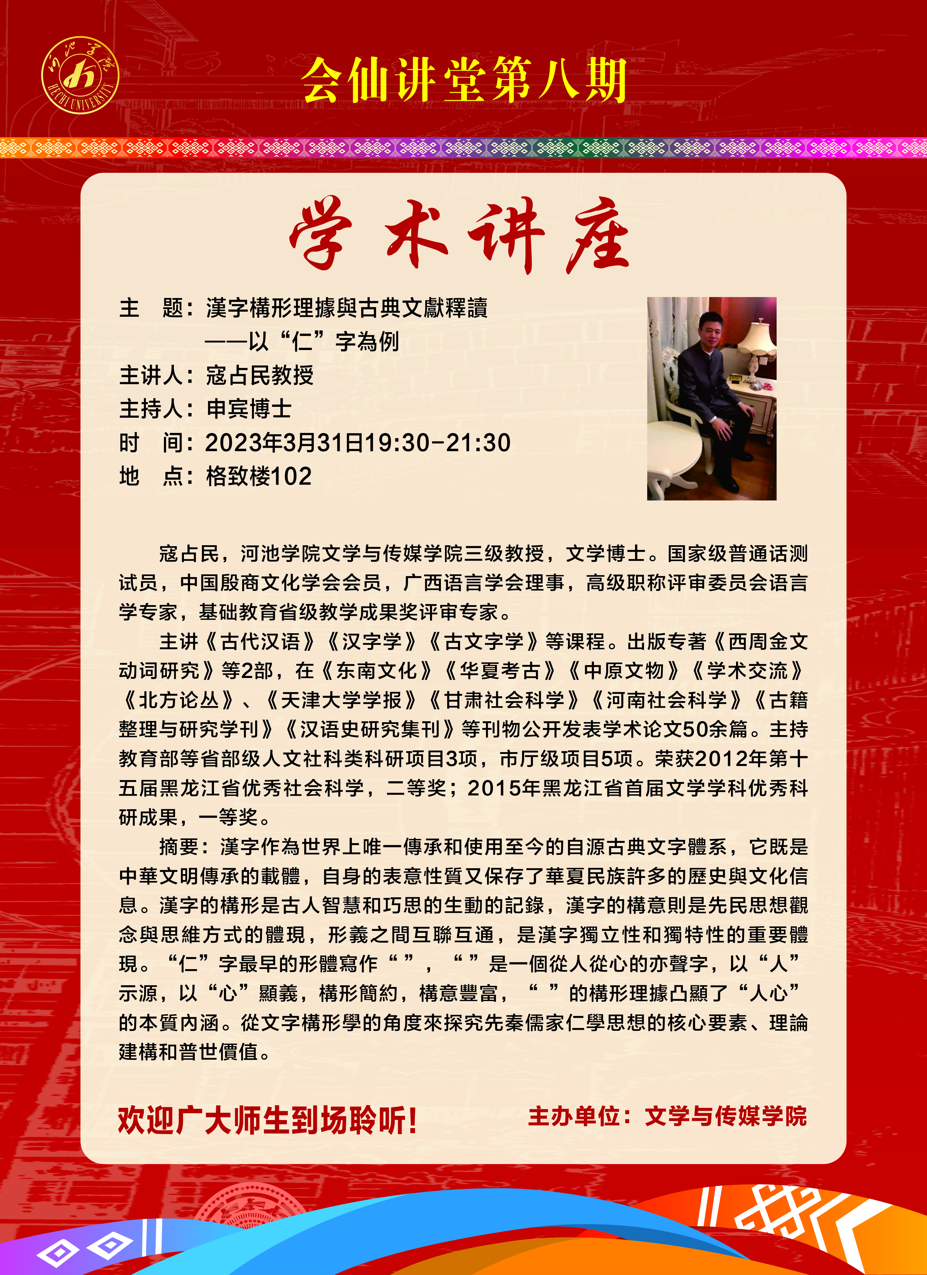 【会仙讲堂】第八期: 汉字构形理据与古典文献释读 ——以“仁”字为例