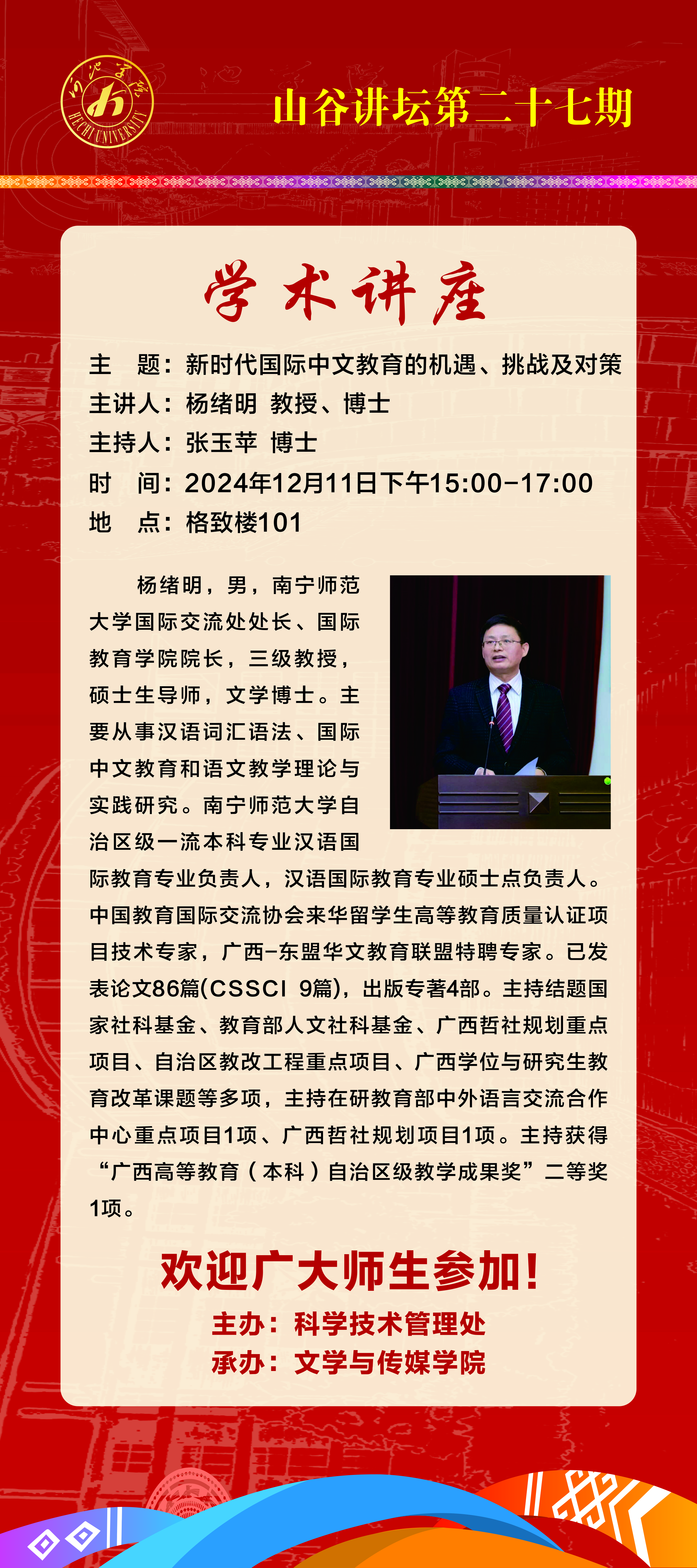 【山谷讲坛第二十七期】新时代国际中文教育的机遇、挑战及对策