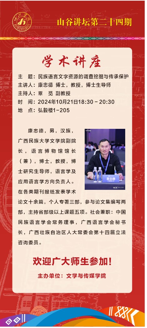 【山谷讲坛第二十四期】民族语言文字资源的调查挖掘与传承保护
