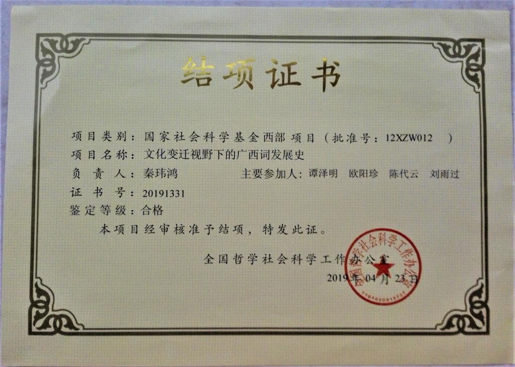 秦玮鸿的2019年国家社会科学基金西部项目顺利结项